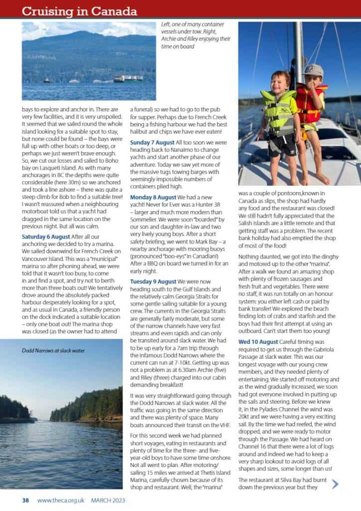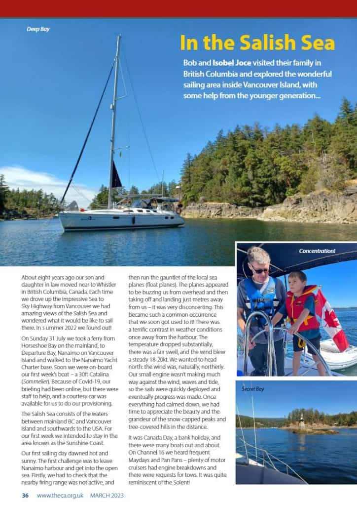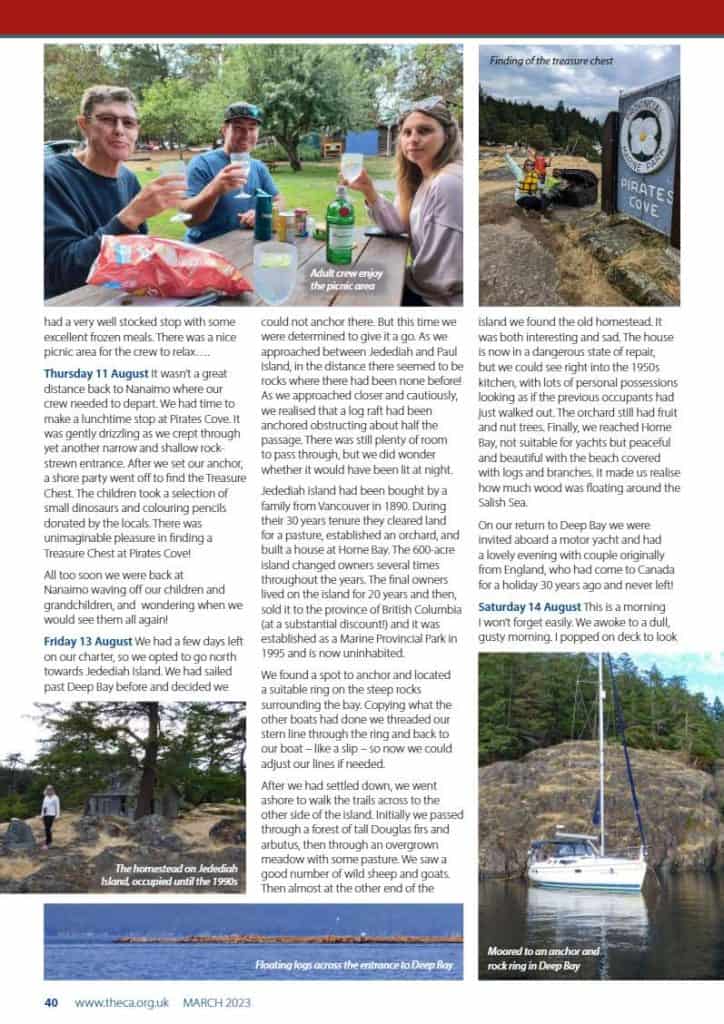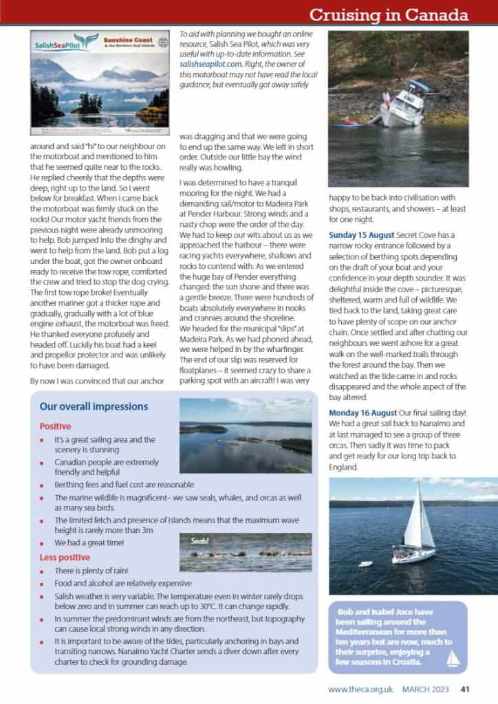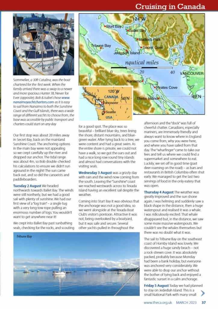 Here at Nanaimo Yacht Charters & Sailing School, our charter guests are from all over the world! This past season, we had the pleasure of welcoming Bob and Isabel Joce to our Charter Base. Isabel wrote the following article about their trip for the Cruising Association. We want to recognize the Cruising Association, who in their own words state that