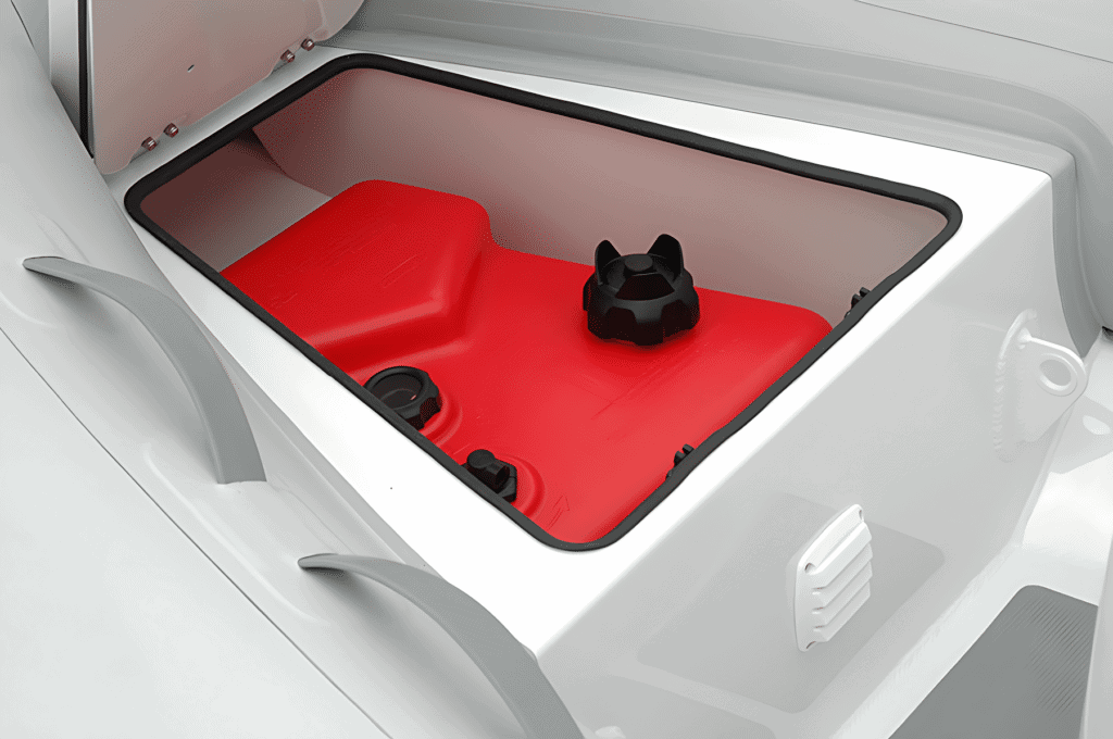 Bow Locker/Seat with Vent & Storage to Fit a 6 Gal Portable Fuel Tank